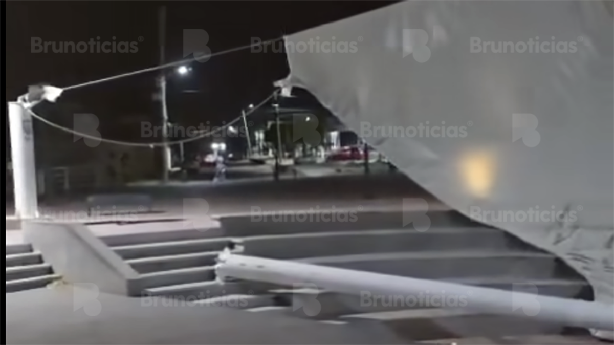 Colapsa estructura del Teatro al Aire Libre en La Piedad tras fuertes vientos