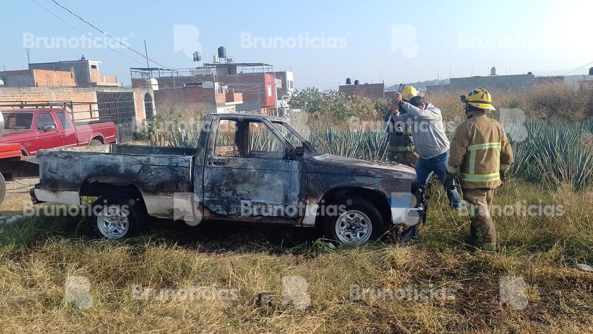 A su llegada, los bomberos encontraron el vehículo envuelto completamente en llamas. Se trataba de una camioneta tipo pickup, marca Chevrolet, color azul con blanco y placas del Estado de México matrícula NTH-92-69. Los “apagafuegos” iniciaron maniobras inmediatas para evitar que el incendio se extendiera a cultivos de agave y zonas de maleza que rodeaban el terreno.