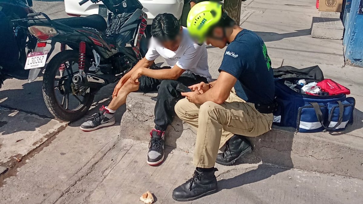 Tras la valoración médica en el lugar del percance, los familiares del joven optaron por trasladarlo por cuenta propia a un centro médico para su atención.
