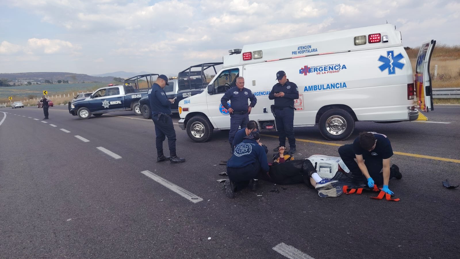 Personal de ERAV brindó apoyo a Milton Jesús M., de 19 años, quien también sufrió lesiones considerables. El joven fue estabilizado en el sitio y posteriormente trasladado al Hospital del IMSS La Piedad. Entre sus probables lesiones destacan: