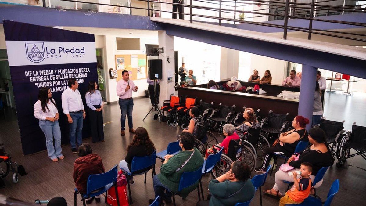 La Piedad, Michoacán. 1 de octubre de 2025.- Este miércoles, la Fundación Merza y el Gobierno Municipal de La Piedad, entregaron nueve sillas de ruedas a personas que padecen de alguna discapacidad y requieren de este aparato para su movilidad.