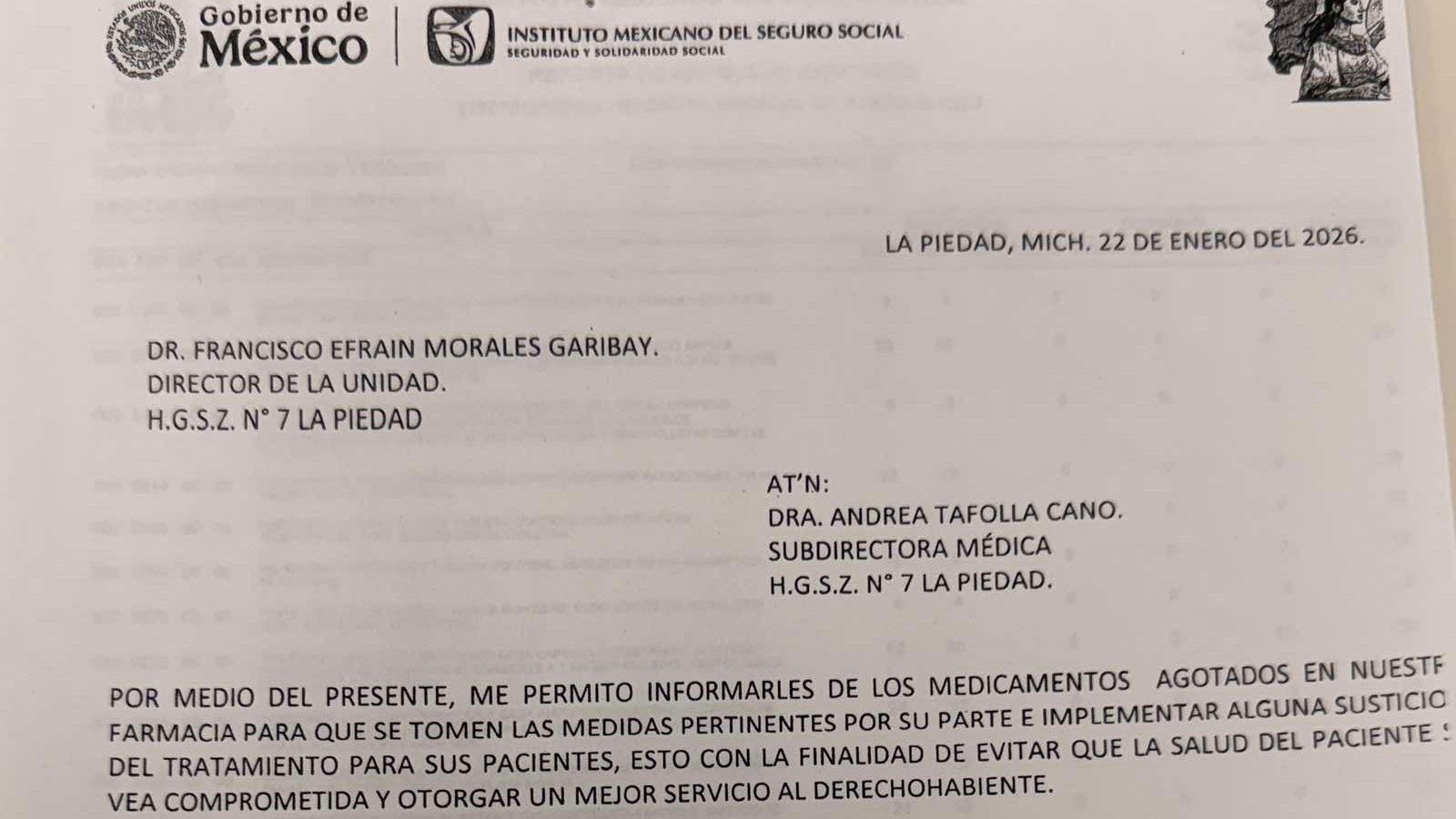 La Piedad, Michoacán. 28 de enero de 2026.- Ni insulina, ni siquiera una aspirina, menos aún anticonceptivos o anticoagulantes. Así la situación en el Hospital General de Subzona No. 7 del Instituto Mexicano del Seguro Social (IMSS) en La Piedad.