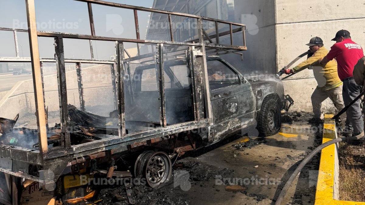 Durante la emergencia, una camioneta cargada con mercancía fue consumida por el fuego, provocando pérdidas materiales para un comerciante en el centro logístico.