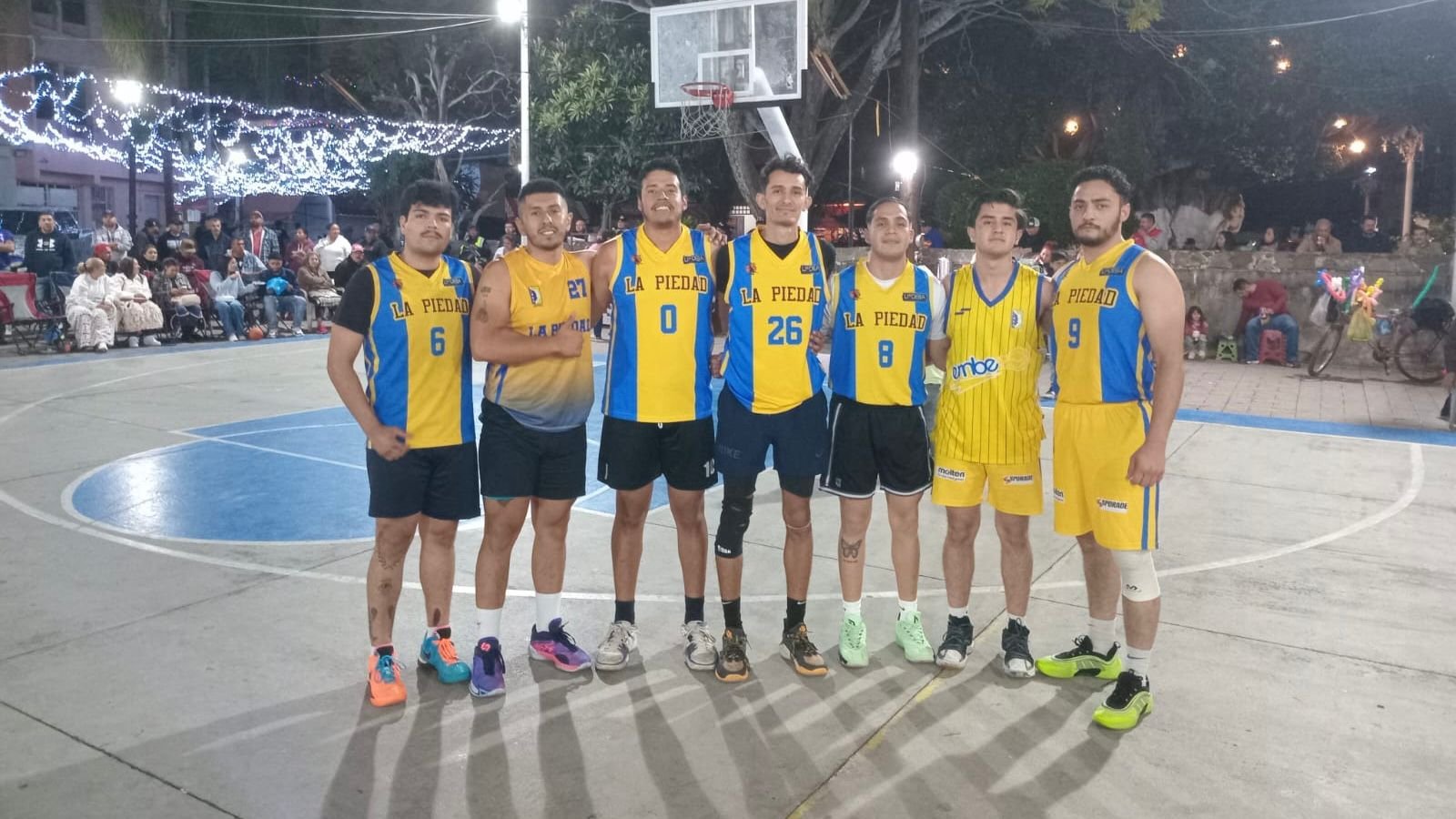 Penjamillo, Michoacán. 6 de enero de 2026.— El equipo varonil de básquetbol de La Piedad se proclamó campeón del Torneo Navideño 2025 tras imponerse con marcador de 101-91 al conjunto de Los Fresnos, en una final disputada la noche del lunes en la cancha instalada en la plaza principal de Penjamillo.