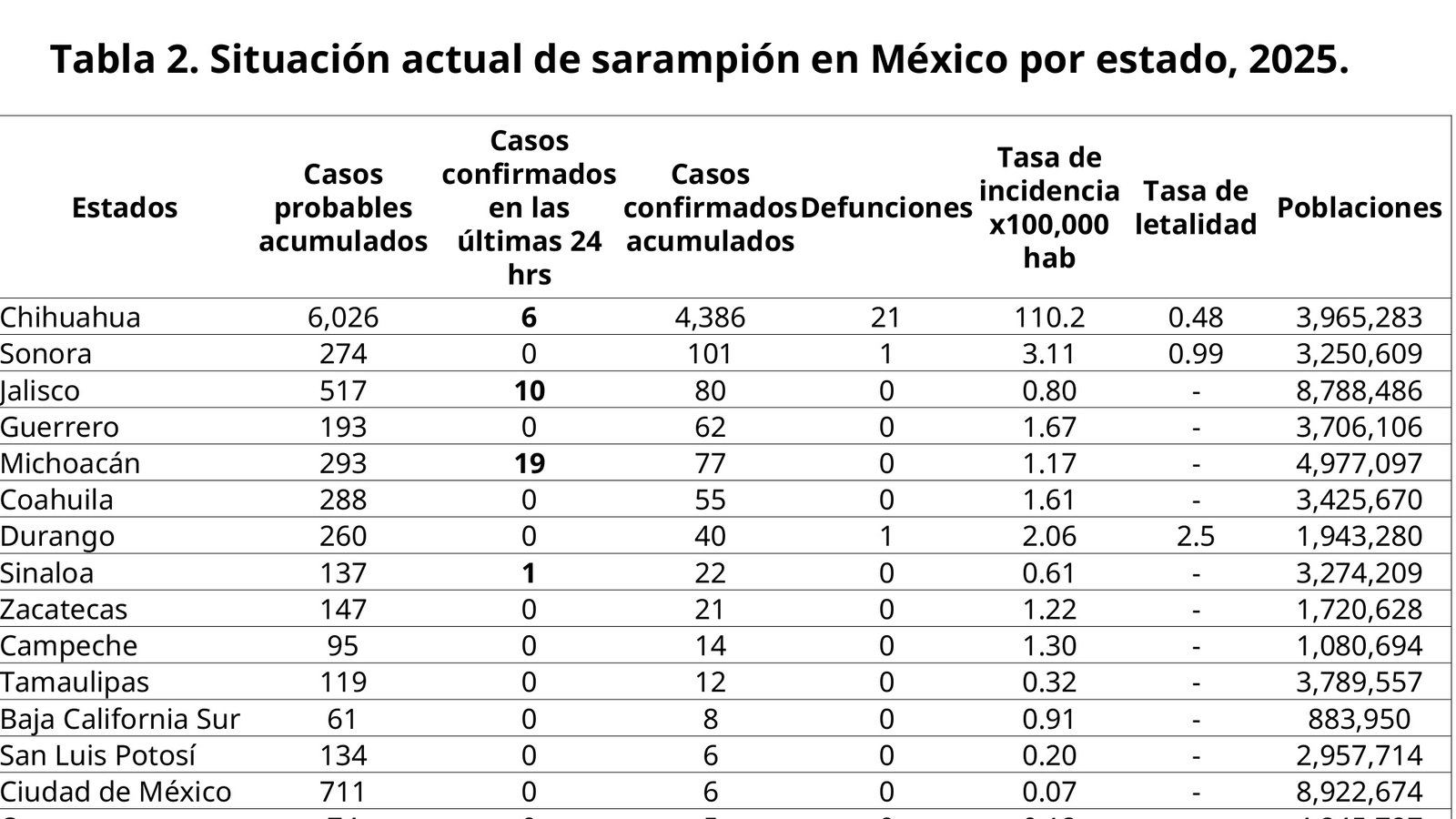 La Piedad, Michoacán. 16 de octubre de 2025.- El 13 de octubre se podría calificar como “lunes negro” en materia de salud en Michoacán. De acuerdo al Informe Diario del Brote de Sarampión en México tan solo ese día fueron confirmados 19 casos de sarampión más.